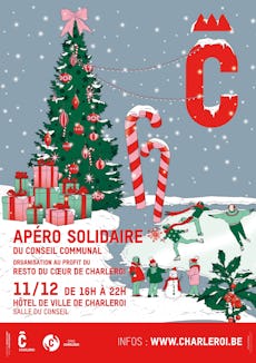 Le Conseil communal vous invite tous et toutes à son Apéro solidaire, le jeudi 11 décembre 2025 de 16h à 22h, salle du Conseil (Hôtel de Ville de Charleroi – Place Vauban).
