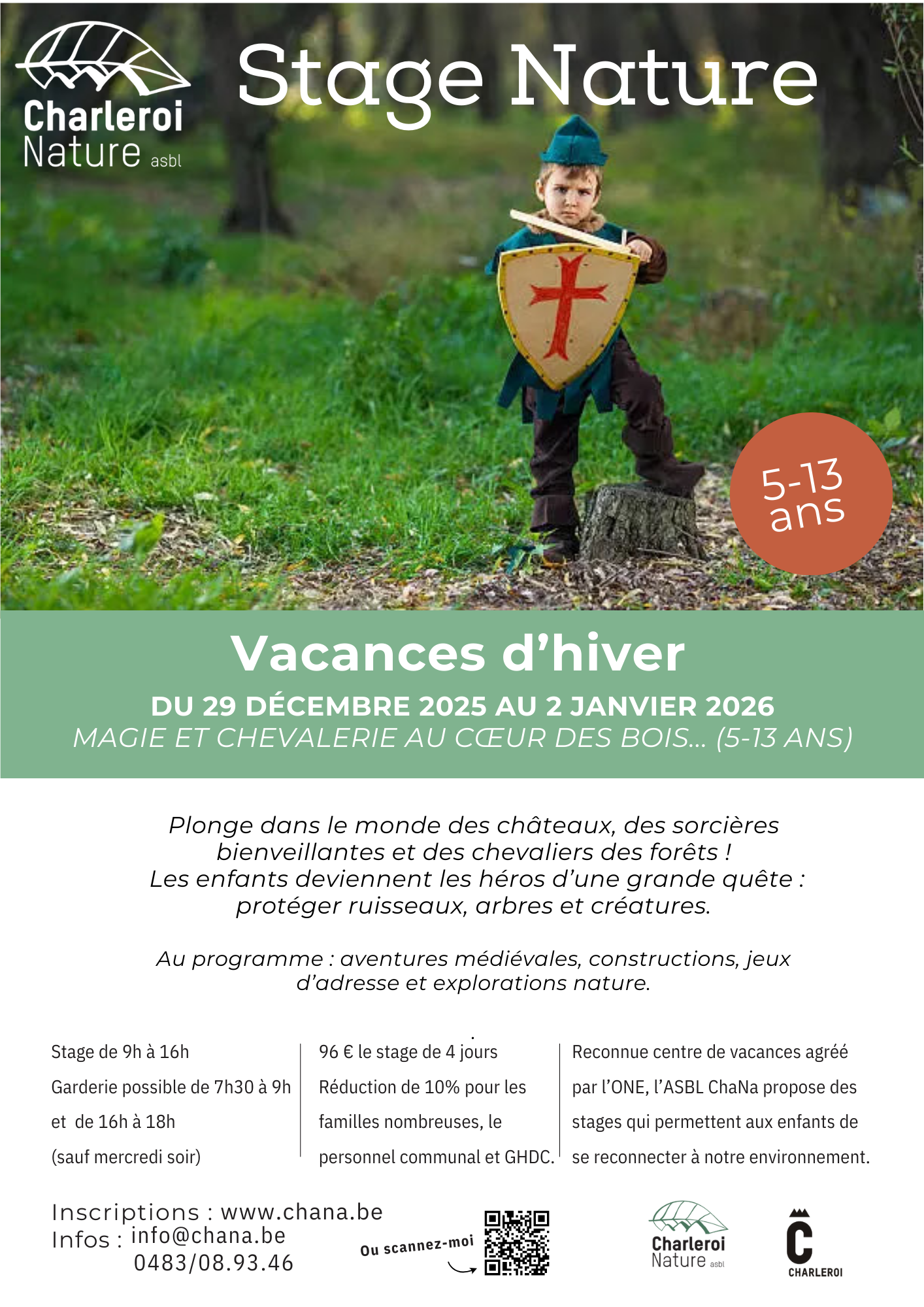 Entre Noël et Nouvel An, offrez à vos enfants une vraie pause nature ! Pendant que les adultes se reposent ou préparent les fêtes, les enfants peuvent vivre des aventures en plein air avec ChaNa : jeux, découvertes, cabanes, histoires et bonne humeur au cœur de la nature 🍃✨ Un stage idéal pour s’aérer, bouger et partager de beaux moments avec d’autres enfants avant la nouvelle année 💚